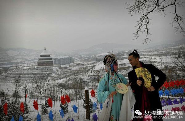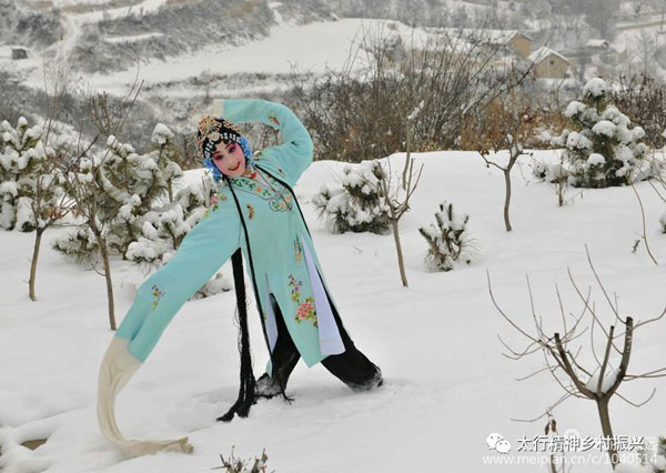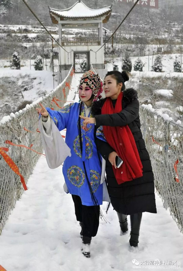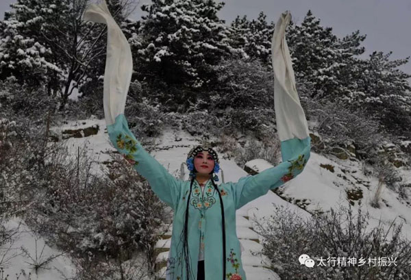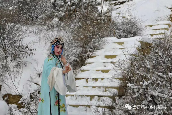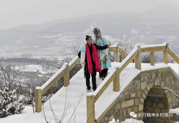 瑞雪紛飛落太行,振興小鎮(zhèn)裹銀裝。