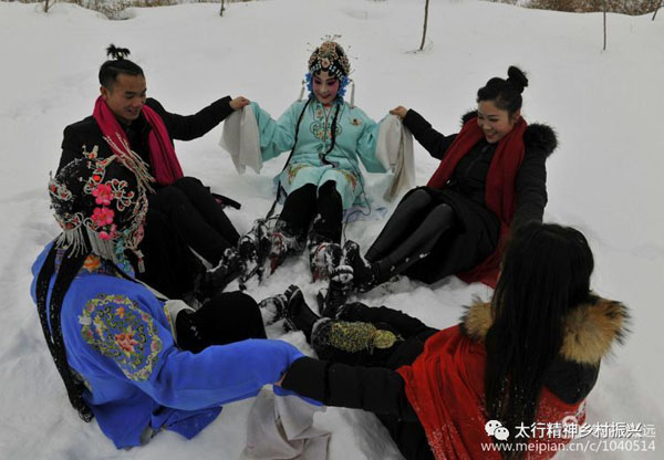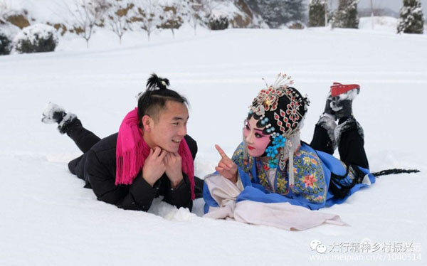 振興冬來雪色美,彩旦嬌娥爭畫屏。