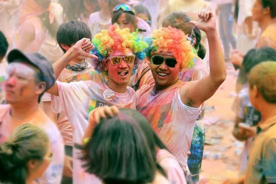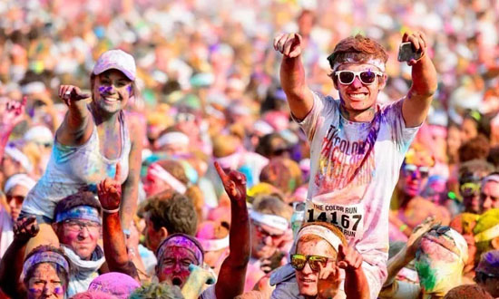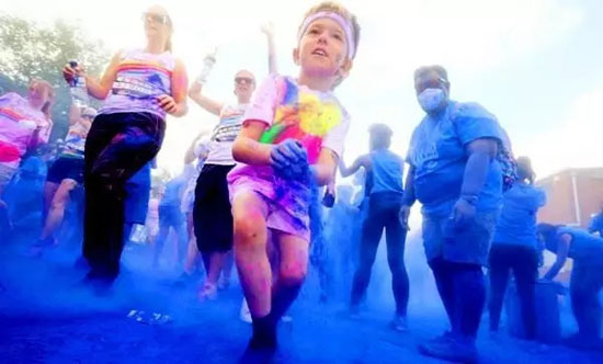 地球上最歡樂的5公里,不計(jì)時(shí)、不比速。彩跑員要陸續(xù)穿過激昂紅色、忠誠(chéng)紫色、光明黃色、自由藍(lán)色和活力綠色五色彩粉站,在漫天撒粉者的祝福中到達(dá)終點(diǎn),在互潑彩粉過程中進(jìn)行青春的狂歡!