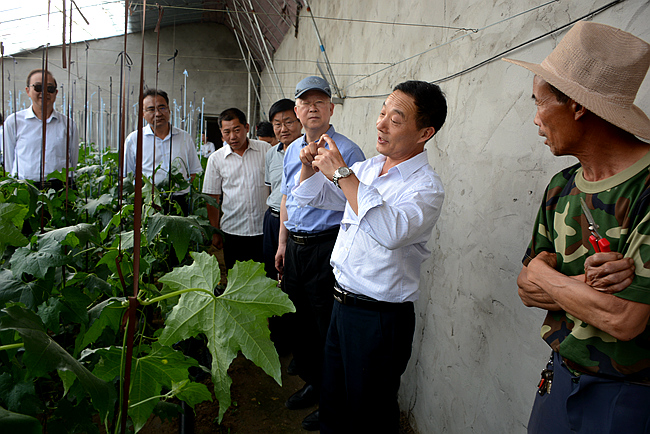 6月5日,東??h雙店鎮(zhèn)三鋪村54歲的村民劉麗的溫室大棚里,連云港市原政協(xié)副主席、市老促會、扶貧協(xié)會理事長李廣成、副會長郝元成和市農(nóng)科所農(nóng)業(yè)專家組成的產(chǎn)業(yè)扶貧“智囊團“一行現(xiàn)場解疑答惑,傳經(jīng)送寶,實地調(diào)研高效農(nóng)業(yè)發(fā)展以及精準扶貧產(chǎn)業(yè)情況,共商脫貧攻堅大計。