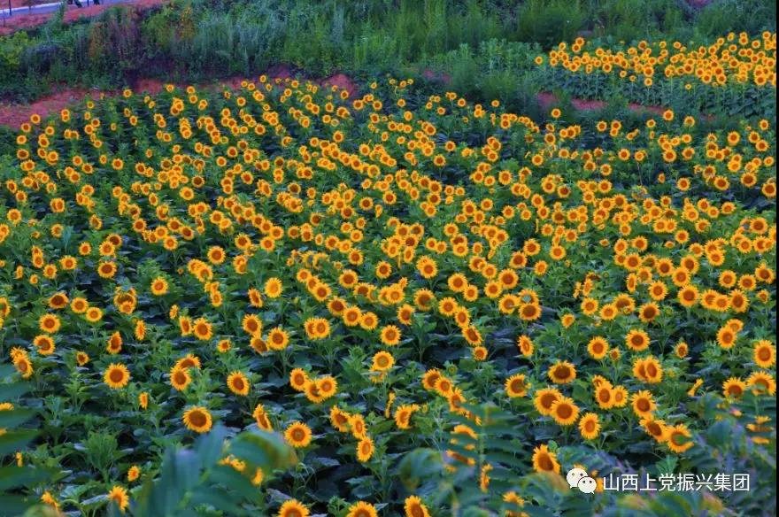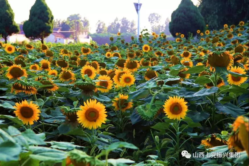 一大片金黃的葵花迎著太陽(yáng)伸展枝頭,順著微風(fēng)輕搖花瓣,只見(jiàn)一朵朵金黃色的向日葵就像一張張笑臉,似乎在向游人展示著它們的熱情,召喚他們的光臨。