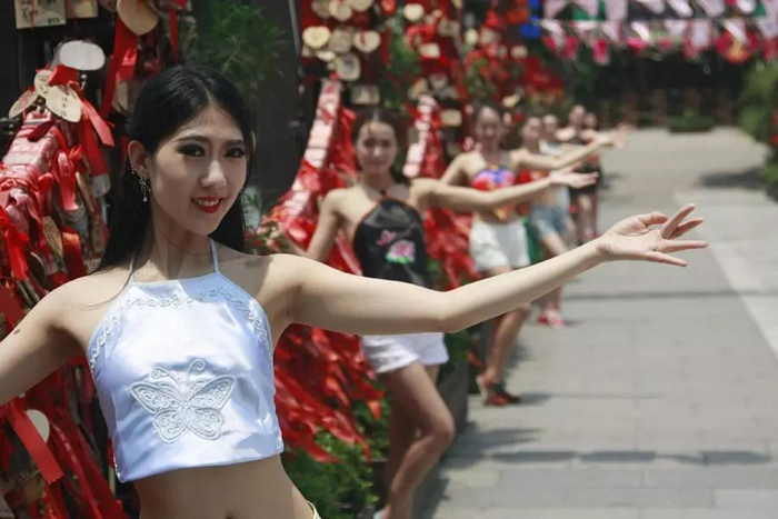 肚兜是中國(guó)古代女人的內(nèi)衣,是閨房?jī)?nèi)的服飾,受傳統(tǒng)觀念的束縛,一直鮮露人前,隨著人們觀念改變,肚兜在融入了許多時(shí)尚元素后,慢慢的出現(xiàn)在人們的視野中。為了弘揚(yáng)中華傳統(tǒng)文化,展示肚兜獨(dú)特的魅力,振興小鎮(zhèn)景區(qū)定于8月17日—8月19日舉辦十里紅妝肚兜秀?,F(xiàn)場(chǎng)將有代表著唐宋元明清不同時(shí)代各種形式的肚兜展示,同時(shí)還有精彩的快閃、熱舞等表演,同時(shí)景區(qū)工作人員將以肚兜裝亮相,為賓客提供服務(wù)。