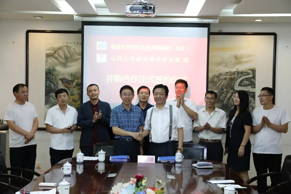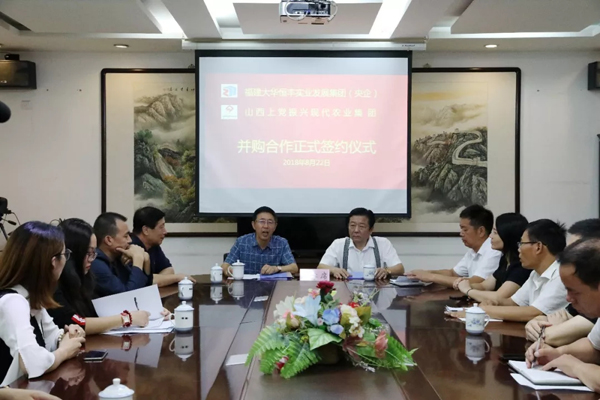 8月22日,山西上黨振興集團(tuán)與福建大華恒豐實業(yè)發(fā)展集團(tuán)在長治縣振興村舉行并購合作簽約儀式。中國投資協(xié)會農(nóng)業(yè)和農(nóng)村專業(yè)投資委員會副會長魏湘濱、正華集團(tuán)副總裁徐建、正華集團(tuán)副總裁兼福建大華恒豐實業(yè)發(fā)展集團(tuán)總經(jīng)理林飛、山西上黨振興現(xiàn)代農(nóng)業(yè)集團(tuán)牛扎根等領(lǐng)導(dǎo)出席簽約儀式。