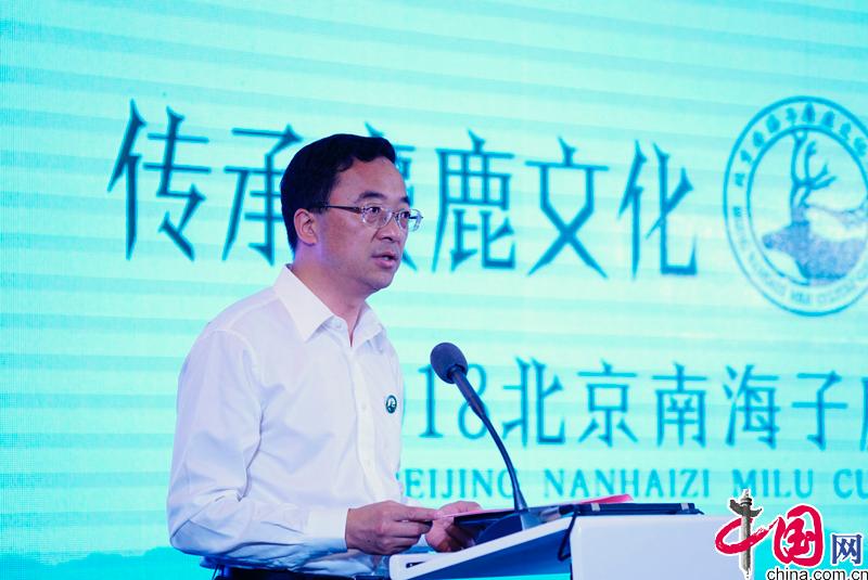 麋鹿文化是我們共同的傳承。人與自然同,命運(yùn)休戚共。面對(duì)人類,麋鹿是自由的。擁有麋鹿,自然是和諧的。自由與和諧,是麋鹿文化的精髓,更是中華民族實(shí)現(xiàn)偉大復(fù)興的精神財(cái)富?,F(xiàn)在的大興,坐擁新機(jī)場(chǎng)、毗鄰副中心、輻射京津冀、連通雄安新區(qū),將是首都南部發(fā)展新高地,“高精尖”經(jīng)濟(jì)結(jié)構(gòu)的主陣地,森林環(huán)抱中的新機(jī)場(chǎng)即將實(shí)現(xiàn)首飛,承載著國(guó)家發(fā)展新的動(dòng)力源的重大使命,越發(fā)璀璨的南海子、麋鹿苑以及永定河文化帶將與之交相輝映,將成為人與自然和諧發(fā)展的新典范。今天,是麋鹿回歸祖國(guó)33周年紀(jì)念日,我們?cè)诖藭r(shí)此地舉辦南海子麋鹿文化大會(huì),可謂正當(dāng)其時(shí)、恰臨其地。站在通往未來的新起點(diǎn)上,我們的使命越發(fā)光榮艱巨,我們將全力推動(dòng)麋鹿形象參與冬奧會(huì)吉祥物征集、開展麋鹿保護(hù)自然申遺、建設(shè)以麋鹿文化為支撐的南海子文化博物館,把大興打造成全國(guó)麋鹿科研高地、麋鹿文化傳播策源地和麋鹿民間外交新陣地。讓我們共同攜手,以大會(huì)為媒介,共同領(lǐng)略“京南古苑囿、東方新國(guó)門”的大興風(fēng)采,也共同傳遞我們大德融天下、興業(yè)惠四方的發(fā)展理念。