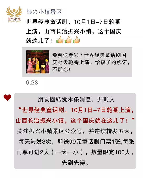 10月1日-10月7日,大型童話劇空降山西長治振興小鎮(zhèn)。想去看的小朋友別著急,小鎮(zhèn)有福利。