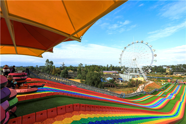 二期項(xiàng)目“田園樂(lè)翻天”是一個(gè)提升農(nóng)業(yè)生產(chǎn)附加值的創(chuàng)意休閑農(nóng)業(yè)項(xiàng)目。項(xiàng)目以“嬉戲田園一天,穿越時(shí)空千年”為定位,打破固有的“就農(nóng)業(yè)而種莊稼”的思維,在不破壞土地的基礎(chǔ)上創(chuàng)意休閑農(nóng)業(yè)發(fā)展,以酒村古文化為背景、以稻草藝術(shù)為主題、以燈會(huì)的制作手法、以迪士尼的游樂(lè)方式,將中華上下五千年的民俗文化、老成都童趣文化、川西農(nóng)耕文化、天工開(kāi)物等非物質(zhì)文化活化于田間地頭,將田園變樂(lè)園,將農(nóng)業(yè)園區(qū)變旅游景區(qū),打造出了中國(guó)唯一的、全球最大的稻草藝術(shù)主題樂(lè)園。