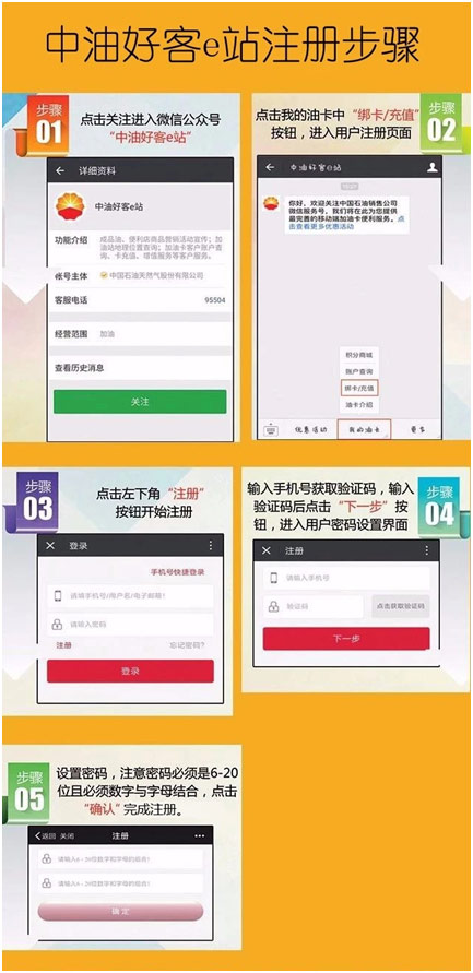 3、領券前愛心車主須關注“中油好客e站”微信公眾號并注冊成為用戶,2月4日起我們將進行派券。注冊步驟如下: