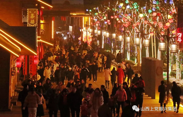 “花市燈如晝,人約黃昏后”,游客們相聚振興小鎮(zhèn)景區(qū)充分體驗(yàn)傳統(tǒng)佳節(jié)的樂(lè)趣。