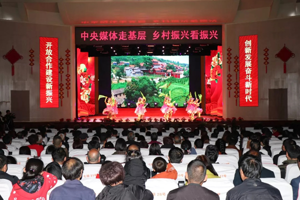 創(chuàng)新發(fā)展奮斗新時(shí)代,開放合作建設(shè)新振興。4月27日晚,“中央媒體走基層鄉(xiāng)村振興看振興”文藝晚會(huì)在國(guó)家AAAA級(jí)旅游景區(qū)——振興小鎮(zhèn)精彩上演,演出現(xiàn)場(chǎng)座無虛席、氣氛活躍。來自國(guó)家、省、市、區(qū)相關(guān)領(lǐng)導(dǎo),全國(guó)40余家主流媒體記者及廣大群眾近千人觀看了文藝晚會(huì)。