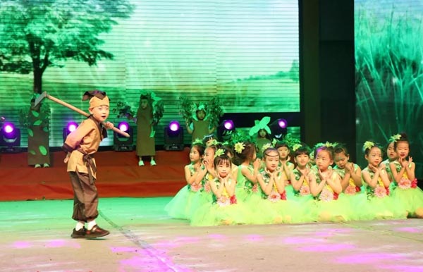 演出在舞蹈《中國(guó)范兒》中拉開(kāi)帷幕,小朋友們個(gè)個(gè)精神抖擻、隨著強(qiáng)勁的音樂(lè)翩翩起舞,一開(kāi)場(chǎng)就把大家?guī)нM(jìn)了歡樂(lè)的海洋中。舞蹈《社會(huì)搖》《噠噠噠》《低碳貝貝》《精武門(mén)》《萌二代》《寶寶笑了》《中華孝道》《兵娃娃》《花裙子飄起來(lái)》,童話(huà)劇《拔苗助長(zhǎng)》,交誼舞《愛(ài)的華爾茲》,《竹竿舞》,親子舞《感知成長(zhǎng)的神奇》等一系列精彩的節(jié)目,把時(shí)尚潮流、傳統(tǒng)美德同小朋友們天真可愛(ài)的表演結(jié)合起來(lái),在演出中彰顯了現(xiàn)代與傳統(tǒng)文化的魅力,為大家?guī)?lái)一場(chǎng)童年的文藝盛宴。