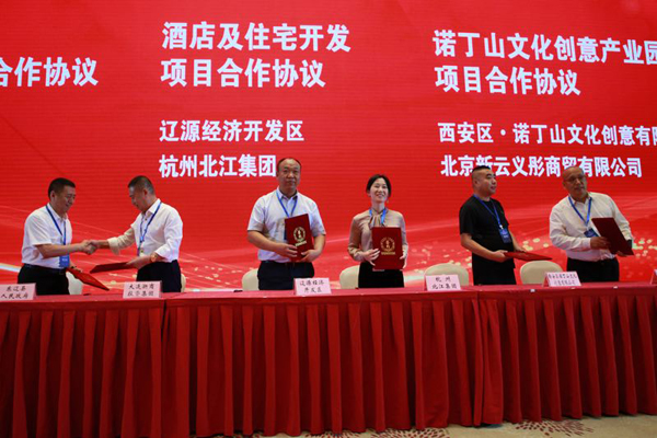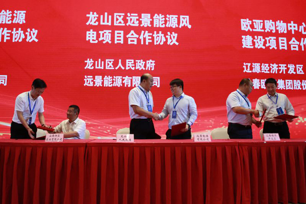 簽約儀式上,遼源市人民政府與中國(guó)核能電力股份有限公司簽署戰(zhàn)略合作協(xié)議;遼源市人民政府與大連萬(wàn)達(dá)商業(yè)管理集團(tuán)簽署萬(wàn)達(dá)廣場(chǎng)城市綜合體建設(shè)項(xiàng)目合作協(xié)議;遼源市科技局與新加坡新達(dá)科技集團(tuán)簽署戰(zhàn)略合作協(xié)議;吉林省華紡靜電材料科技有限公司與法國(guó)安德里茨阿斯蘭 ·蒂博公司簽署技術(shù)合作協(xié)議;東豐縣人民政府與韓中經(jīng)貿(mào)總商會(huì)簽署鹿業(yè)發(fā)展戰(zhàn)略合作協(xié)議;東豐縣人民政府與山西歸正實(shí)業(yè)有限公司簽署東豐縣生物質(zhì)能源產(chǎn)業(yè)化項(xiàng)目合作協(xié)議;龍山區(qū)人民政府與遠(yuǎn)景能源有限公司簽署龍山區(qū)遠(yuǎn)景能源風(fēng)電項(xiàng)目合作協(xié)議;遼源經(jīng)濟(jì)開(kāi)發(fā)區(qū)與歐亞集團(tuán)簽署歐亞購(gòu)物中心二期項(xiàng)目建設(shè)合作協(xié)議;東遼縣人民政府與大連浙商投資集團(tuán)簽署年加工 20萬(wàn)噸全株紅甜菜項(xiàng)目合作協(xié)議;遼源經(jīng)濟(jì)開(kāi)發(fā)區(qū)與浙江北江集團(tuán)簽署酒店及住宅開(kāi)發(fā)項(xiàng)目合作協(xié)議;西安區(qū)諾丁山文化創(chuàng)意有限公司與北京新云義彤商貿(mào)有限公司簽署諾丁山文化創(chuàng)意產(chǎn)業(yè)園項(xiàng)目合作協(xié)議;遼源經(jīng)濟(jì)開(kāi)發(fā)區(qū)與上海海翰投資集團(tuán)有限公司簽署皮爾卡丹棉襪生產(chǎn)基地合作協(xié)議;東遼縣人民政府與中廣核節(jié)能產(chǎn)業(yè)發(fā)展有限公司簽署日產(chǎn)12萬(wàn)立方米生物天然氣項(xiàng)目合作協(xié)議;西安區(qū)人民政府與吉林省新型城鎮(zhèn)化建設(shè)有限公司簽署遼源長(zhǎng)白山特色漿果產(chǎn)品深加工基地項(xiàng)目合作協(xié)議。