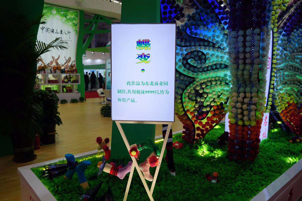 8月23日上午,第十二屆東北亞博覽會(huì)開(kāi)幕式拉開(kāi)帷幕,在眾多展位中,遼源地區(qū)展位格外引人注目。栩栩如生的彩色蝴蝶是由襪子玫瑰花組成,時(shí)而響起一陣陣歡快的琵琶曲,引人駐足……