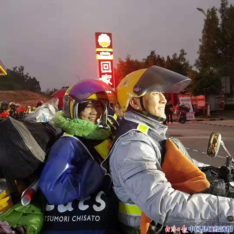 在摩托車流中,現(xiàn)場兩輛小汽車格外顯眼。車主董日旭,江西上饒人,今年39歲,在晉江一家服裝廠負(fù)責(zé)管理工作。今年以前,他是一位老鐵騎,而如今,他是中國石油順風(fēng)車公益行動的愛心車主。即便是多年的老鐵騎,說起一路的辛苦也不斷搖頭:“危險(xiǎn)!也太冷了,特別是膝蓋。”前陣子,董日旭買了一輛小車,準(zhǔn)備帶著老婆和女兒一起回家過年?!斑€能捎上一位老鄉(xiāng)?!?/p>