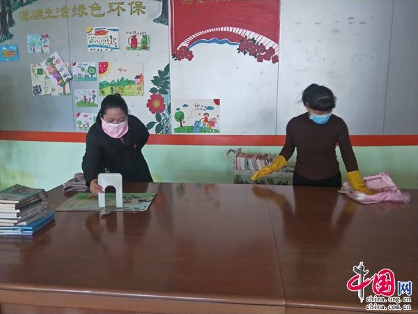 (各館黨員帶頭做窗口服務(wù)點衛(wèi)生消毒)