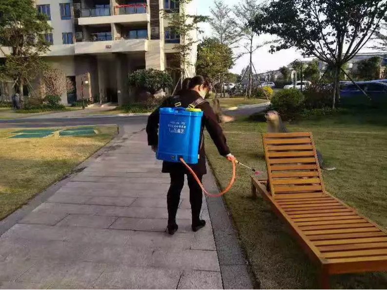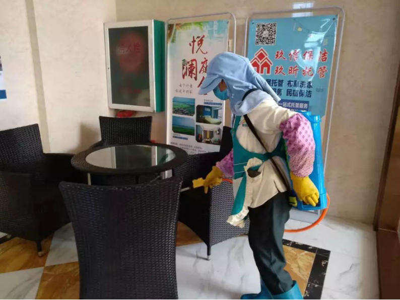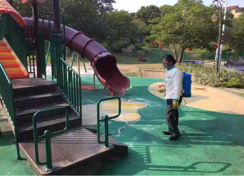 防疫期間,苑區(qū)各個(gè)角落必須每天反復(fù)消毒,環(huán)境員們定時(shí)對(duì)電梯、游樂(lè)場(chǎng)、地下室等公共區(qū)域噴灑消毒水并進(jìn)行反復(fù)擦拭,不讓病毒有可乘之機(jī)。