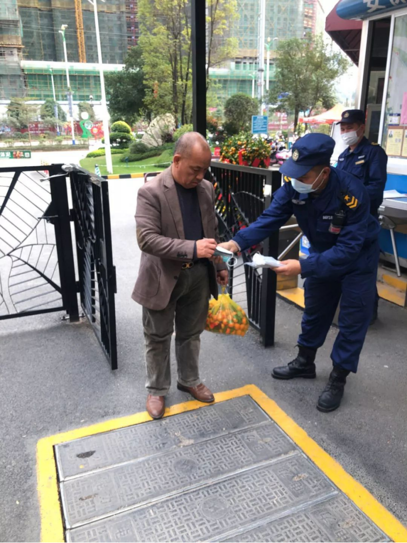 物業(yè)各崗位上崗執(zhí)勤之前,必先消毒,進(jìn)行體溫測(cè)量,佩戴口罩在崗,嚴(yán)格防控,預(yù)防感染。