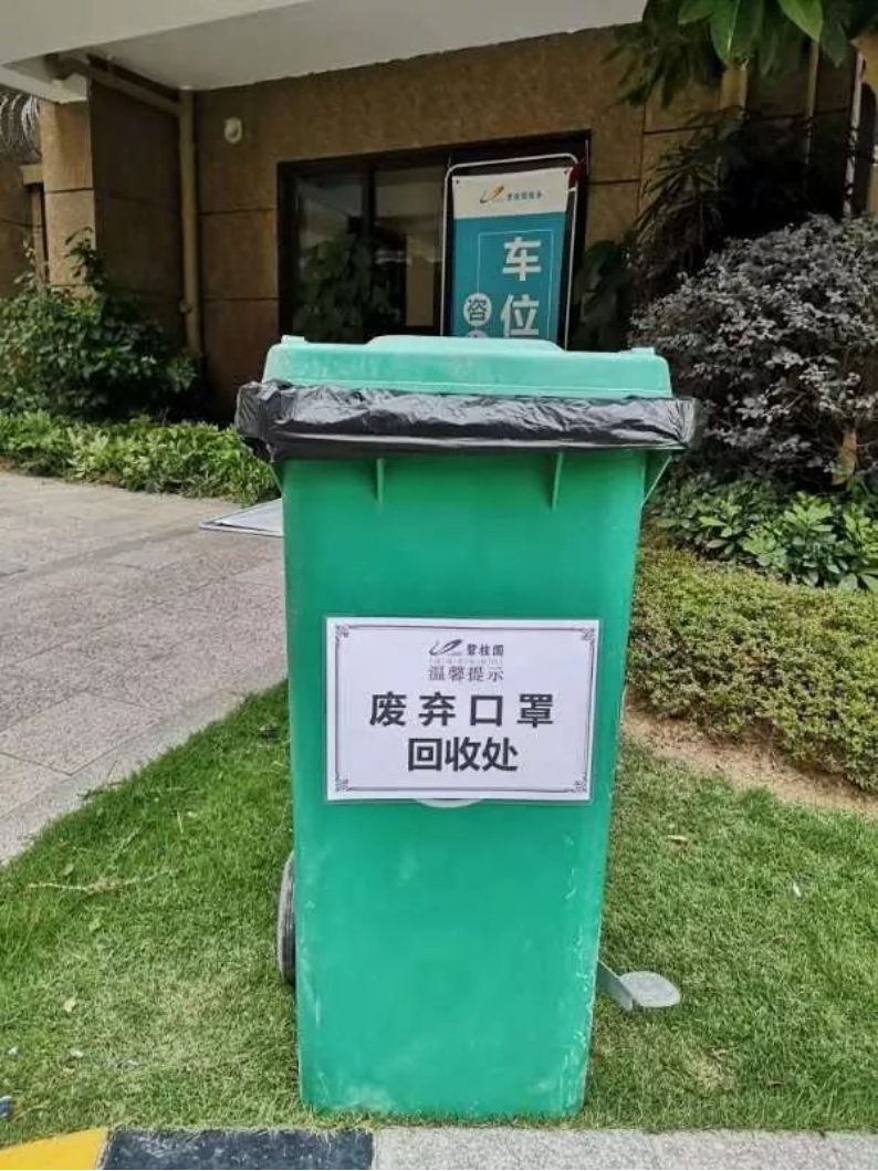 當(dāng)口罩成為我們最有效的貼身防線(xiàn),使用過(guò)的口罩,也是防控的關(guān)鍵。為阻斷病毒傳播,防止廢棄口罩造成二次污染,各苑區(qū)特設(shè)置了“廢棄口罩專(zhuān)用垃圾桶”,物業(yè)人員將統(tǒng)一進(jìn)行消殺處理,避免廢棄口罩再次進(jìn)入流通市場(chǎng)。