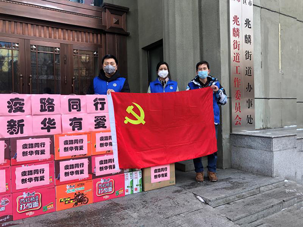 2月24日,新華保險(xiǎn)黑龍江分公司購(gòu)買(mǎi)了方便面、八寶粥、手套、一次性口罩等近萬(wàn)元物資,新華黨員志愿者帶著慰問(wèn)物資走進(jìn)道里區(qū)兆麟派出所、兆麟街道辦事處和安靜街道辦事處,向抗疫一線的平民英雄們致以慰問(wèn)和感謝。新華保險(xiǎn)黑龍江分公司志愿者表示,如需要志愿者新華人義不容辭。