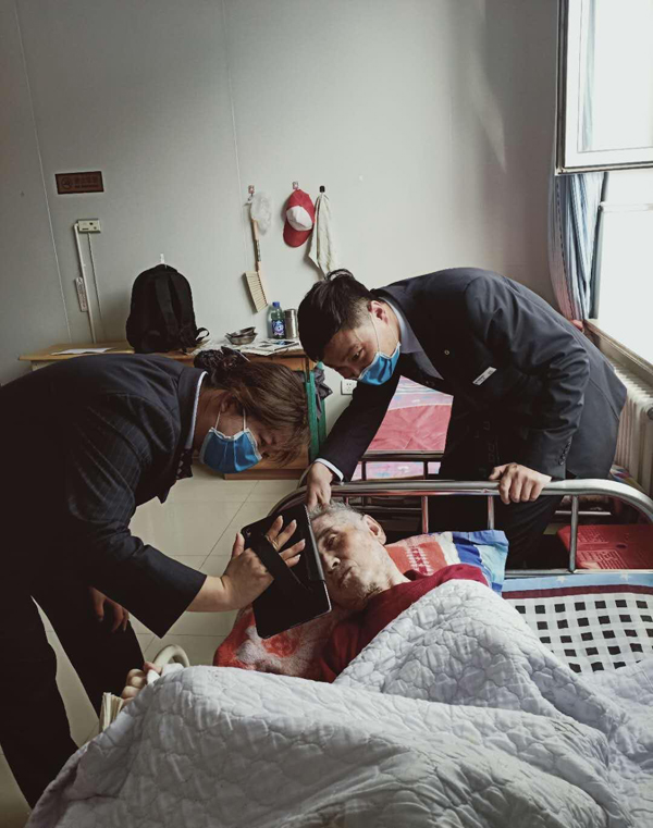 “真沒想到在這個特殊時期,你們能夠克服困難、特事特辦、上門服務,我代表谷玉寶老人向你們表示衷心地感謝!”農(nóng)墾寶泉嶺養(yǎng)老服務中心負責人朱佳富向三位專程為谷玉寶老人“采集影像”的建行員工豎起了大拇指。