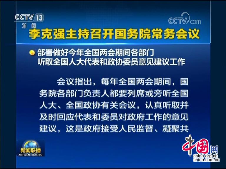 5月13日,李克強(qiáng)總理主持召開國務(wù)院常務(wù)會議,部署做好今年全國兩會期間各部門聽取全國人大代表和政協(xié)委員意見建議工作。