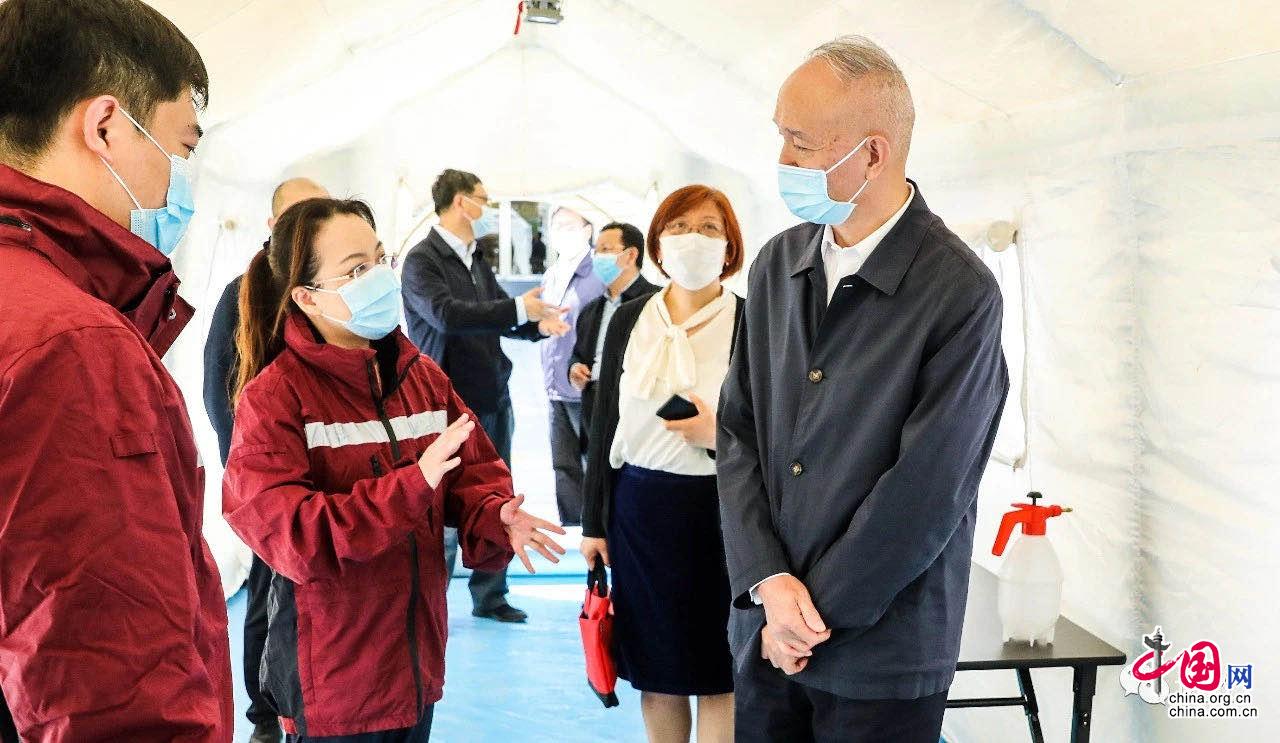 蔡奇在兩會駐地了解核酸檢測采樣工作流程(來源:北京日報“識政”公眾號)