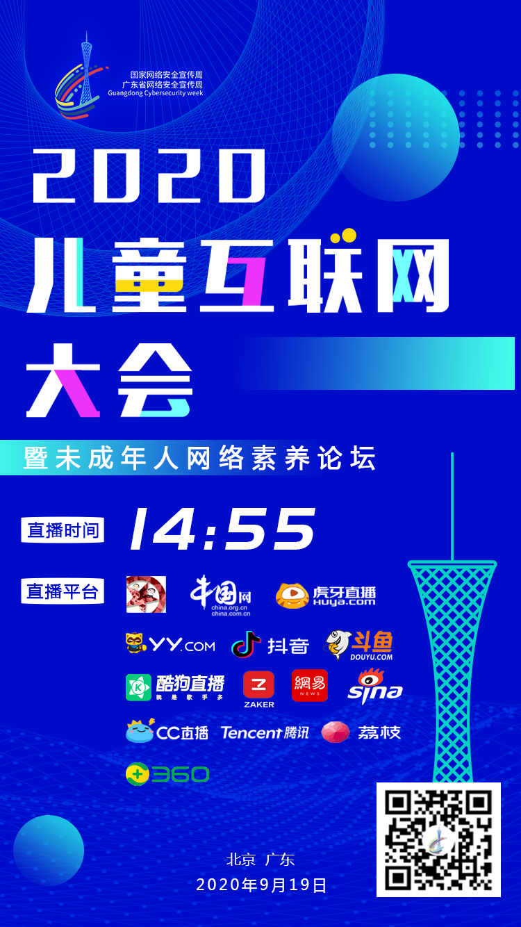 中國網(wǎng)9月19日訊 當前,隨著信息技術(shù)快速發(fā)展,互聯(lián)網(wǎng)已成為青少年求知、社交和娛樂的重要平臺。值2020國家網(wǎng)絡安全宣傳周“青少年日”之際,以“共建未成年人保護機制,促進互聯(lián)網(wǎng)健康發(fā)展”為主題的2020兒童互聯(lián)網(wǎng)大會暨未成年人網(wǎng)絡素養(yǎng)論壇,今日在北京、廣東兩地通過線上線下形式舉辦。廣東省網(wǎng)絡安全宣傳周、中國網(wǎng)同步直播本次大會,并通過“廣東共青團”B站直播間等11個平臺進行推送。