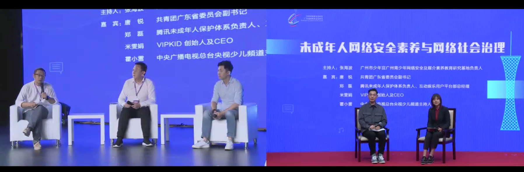 未成年人網(wǎng)絡素養(yǎng)論壇圓桌互動(左:廣東會場、右:北京會場)
