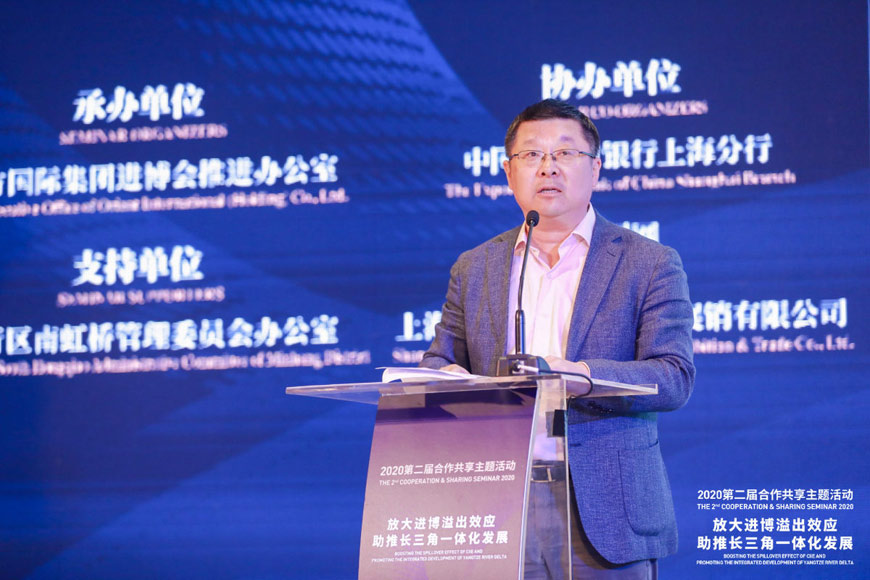 10月14日上午,“放大進(jìn)博溢出效應(yīng)助推長三角一體化發(fā)展”——第二屆合作共享主題活動”在上海舉行,東方國際(集團(tuán))有限公司副總裁朱繼東發(fā)表致辭。
