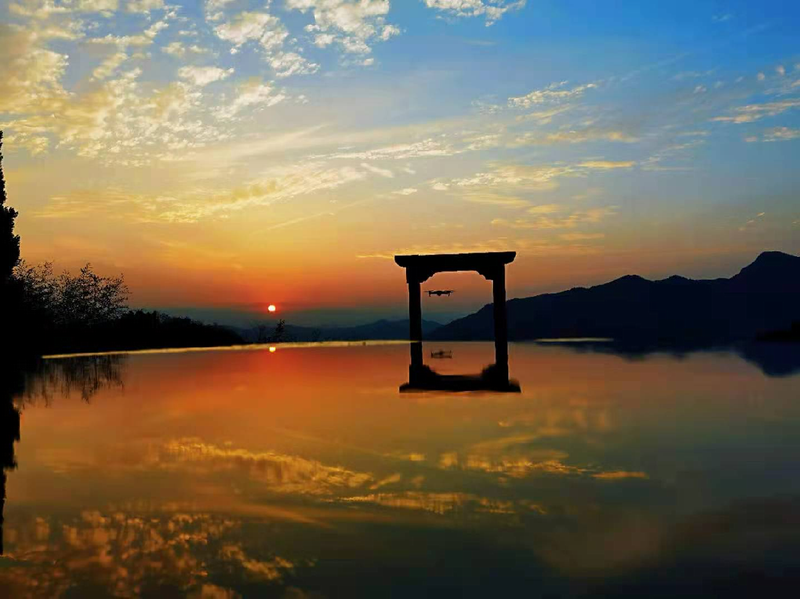 暮色蒼茫之中,連綿起伏的群山正擁抱著一輪橙紅色的落日慢慢下落,瞬間,落日不見,只能看到漂浮在山體相連的暮色蒼茫之中還泛著粉紅色的“魚肚白”了。旅游推廣大使們頓時(shí)有了一種失落感,掀動(dòng)快門的手指顯然速度慢了下來,但還是留下了那美好而精彩的一瞬……。