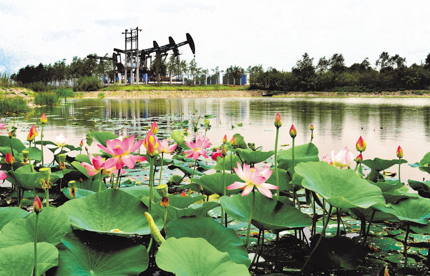 與自然和諧統(tǒng)一的油田生產(chǎn)建設(shè)現(xiàn)場(chǎng)