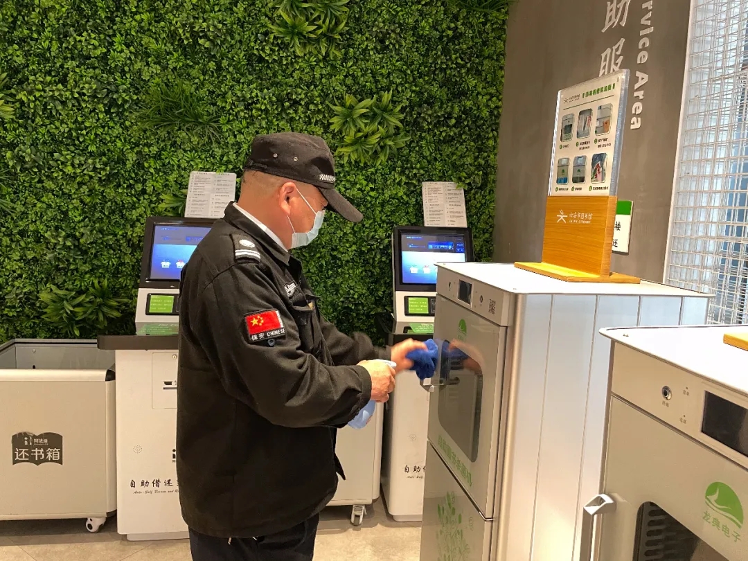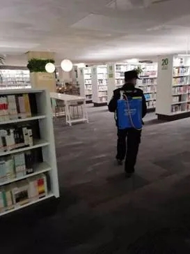 (八)讀者還回圖書(shū)由分揀人員逐本酒精消毒;物業(yè)人員每晚對(duì)館內(nèi)在架圖書(shū)進(jìn)行酒精消毒。