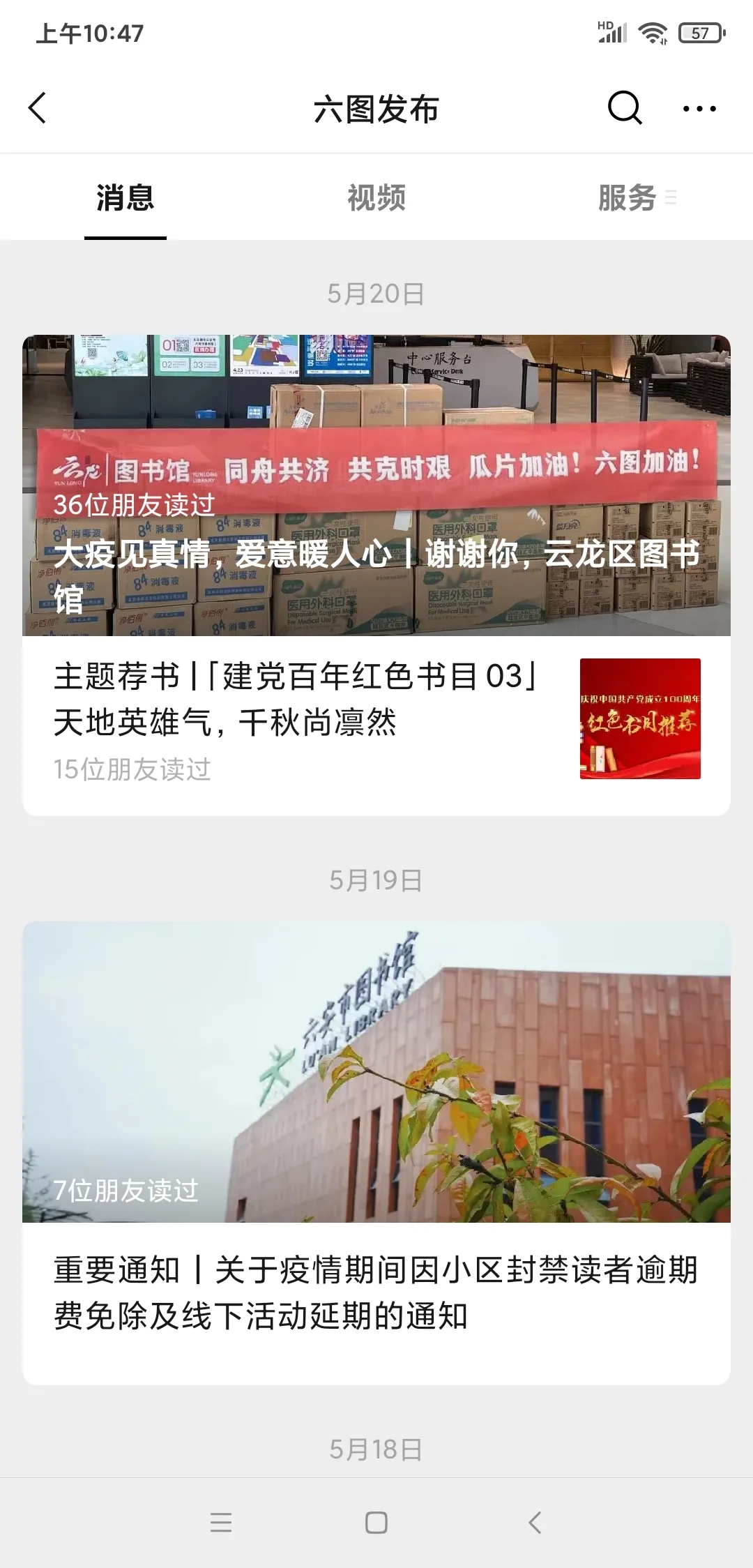 5月14日通過(guò)六安市圖書(shū)館自媒體平臺(tái)發(fā)布《關(guān)于六安市圖書(shū)館及閱享空間線下活動(dòng)延期的通知》