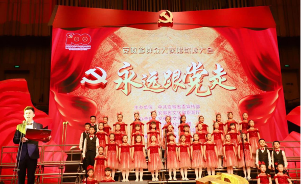 唱紅色歌曲。組織全市文藝工作者開(kāi)展主題創(chuàng)作,推出《山水六安》《黨旗》《忠貞不渝》《百年輝煌》等一批優(yōu)秀歌曲,舉辦“唱支山歌給黨聽(tīng)”六安紅歌擂臺(tái)賽,組織參加慶祝中國(guó)共產(chǎn)黨成立100周年“永遠(yuǎn)跟黨走”安徽省群眾大家唱歌詠大會(huì)。于6月29日晚隆重上演“最美的贊歌獻(xiàn)給黨”六安市慶祝建黨100周年文藝演出。