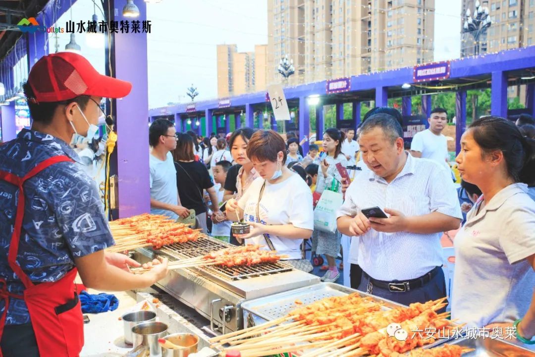 7月29日晚,六安山水城市奧特萊斯門前廣場是五彩斑斕的夜市生活,是狂歡的海洋,是不夜城。這里,寓意六安新商業(yè)中心的崛起。