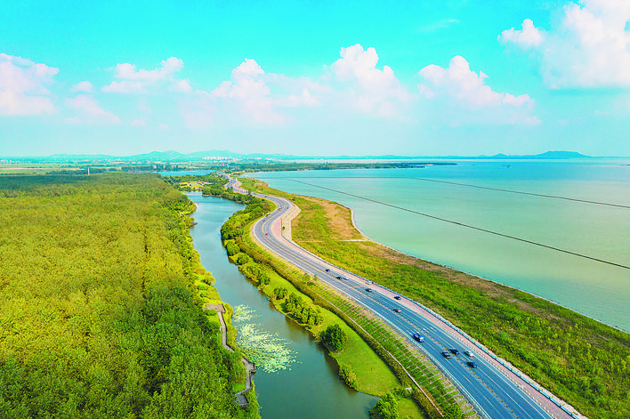環(huán)巢湖沿岸風(fēng)景如畫。葉玉庭記者蘇玲攝