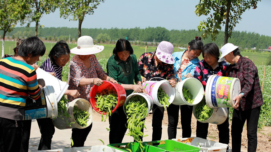 黃樓鎮(zhèn)石家湖村委群眾在吉祥種植合作社荷蘭豆種植基地采摘荷蘭豆