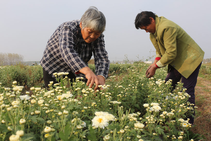 群眾在新社農(nóng)民專業(yè)合作社采摘杭白菊