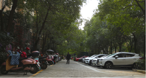 11月10日下午,記者來到肥西縣城東小區(qū),居民樓雖已上了年歲,但在林蔭樹的掩映下,整座小區(qū)幽然靜好。車輛有序停放在道路兩邊,腳邊的花壇里冒出嫰枝,公益廣告隨處可見。