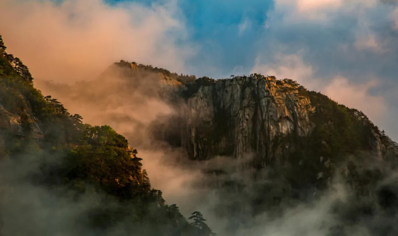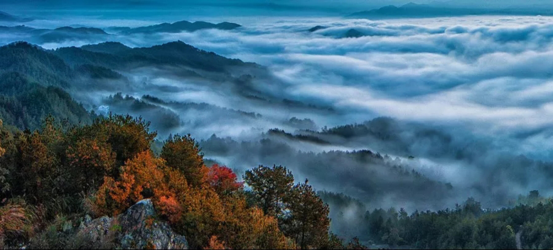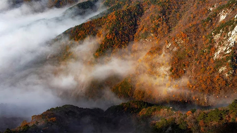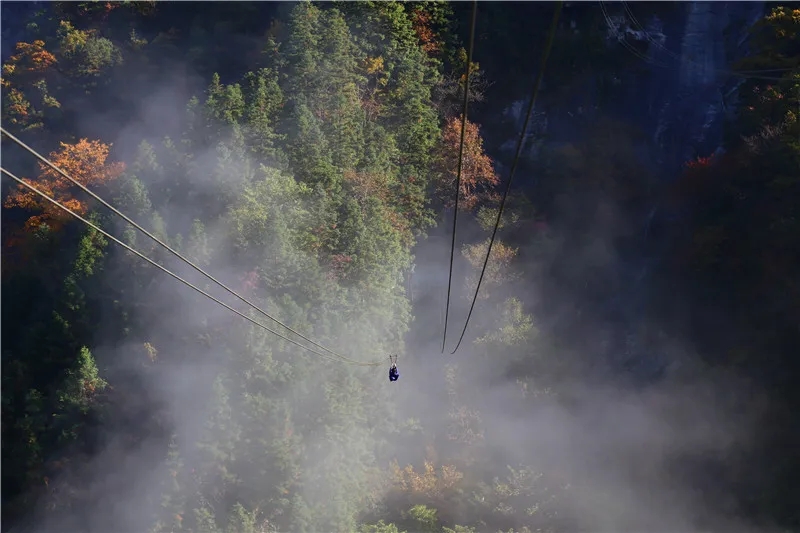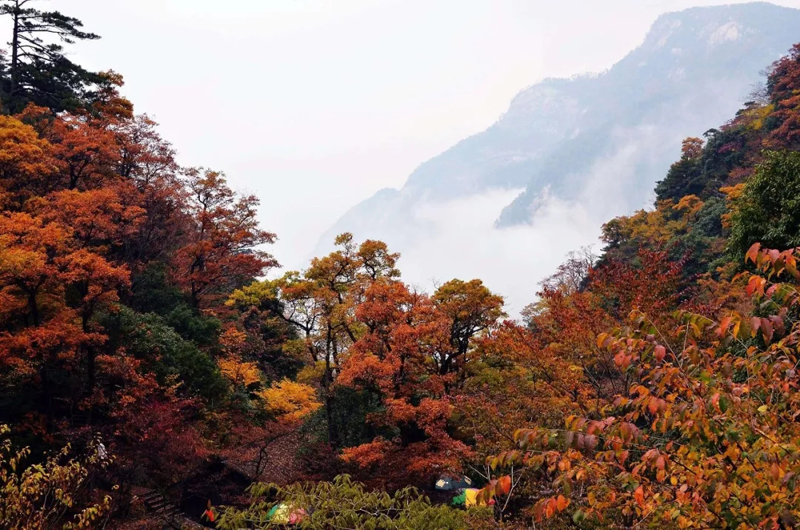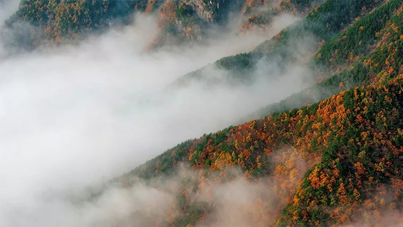 天短夜長,晨起寒霜。霜降過后,原本就很清涼的天堂寨,在清早,已讓人感覺到了冷意。當一抹抹或濃或淡的云霧在天堂寨的山間搖曳,遮去了南飛的大雁、飄落的樹葉,此時,你只需要來這山林間深深的看一眼、吸一口,便會知道,這里秋日正好……