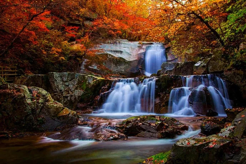 俯聆秋水話情長,盡在十月好時光。天堂寨之秋,秋水長天。那些被山水浸潤過的思緒,被蒙上如霧般的醉態(tài),在瀑布下,在峽谷中,氤氳開來。