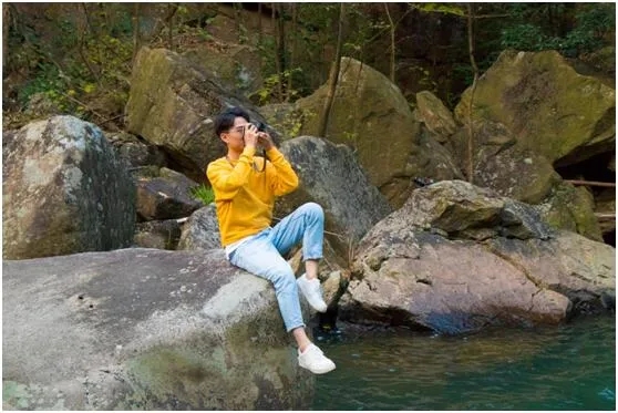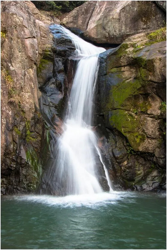 深入蓮花山,向上去可登頂一巨石,俯瞰萬千秋色。向內(nèi)探入,初極狹,復(fù)行數(shù)十步豁然開朗,只見蓮花飛瀑,水簾懸掛,山水掩映,悠然自得。