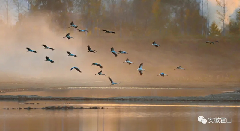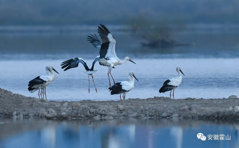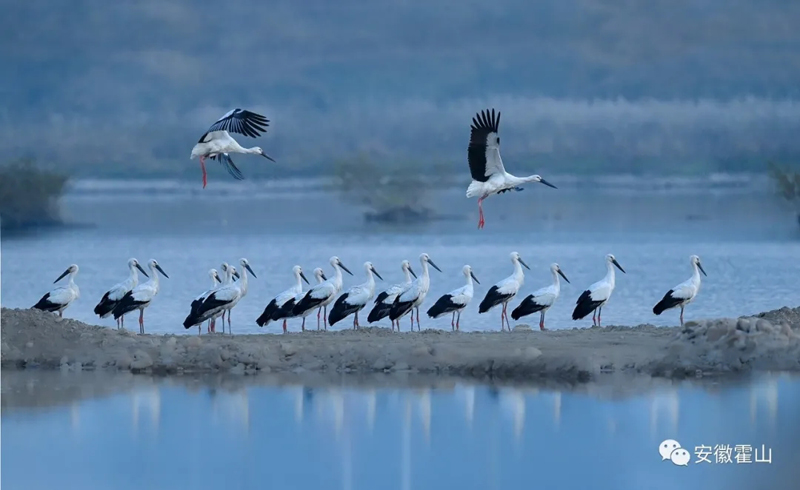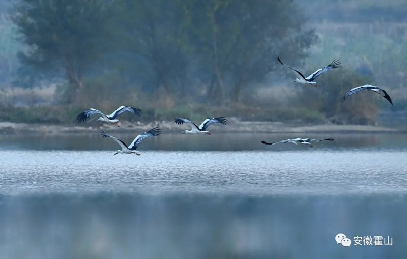 連日來在霍山縣東淠河上空,觀鳥愛好者發(fā)現(xiàn)有成群的東方白鸛在空中盤旋,數(shù)量眾多,這種現(xiàn)象在霍山也是難得一見。