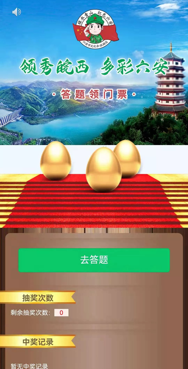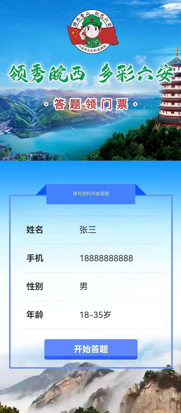 為更好地推廣六安文旅資源,全面展示“綠水青山紅色六安”品牌形象,有效提升廣大市民文明旅游的自覺性,“六安市文化和旅游局發(fā)布”微信公眾號(hào)推出“領(lǐng)秀皖西多彩六安”線上知識(shí)有獎(jiǎng)競(jìng)答活動(dòng)。
