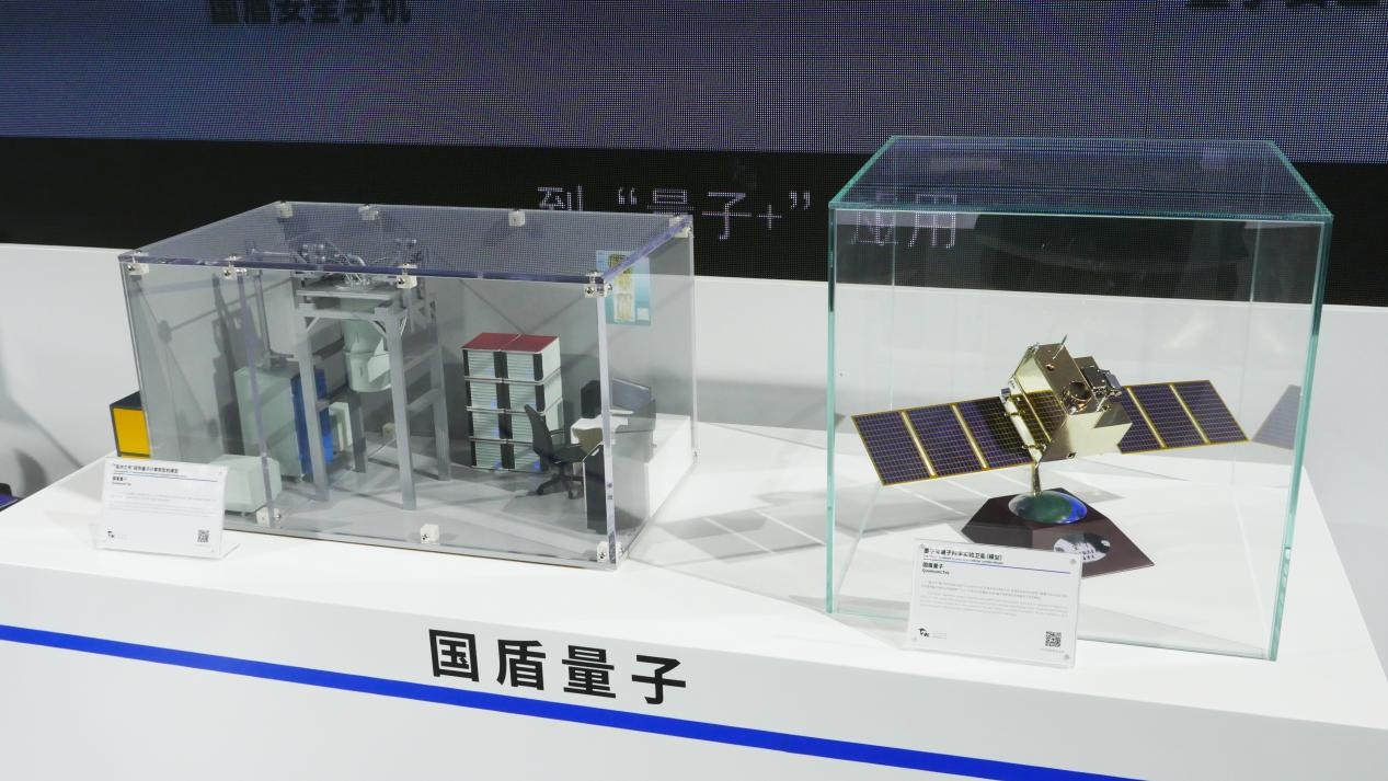 科大國盾的“祖沖之號”超導(dǎo)量子計算原型機(jī)模型、“墨子號”量子科學(xué)實驗衛(wèi)星模型。(央廣網(wǎng)發(fā) 劉宏宇 攝)