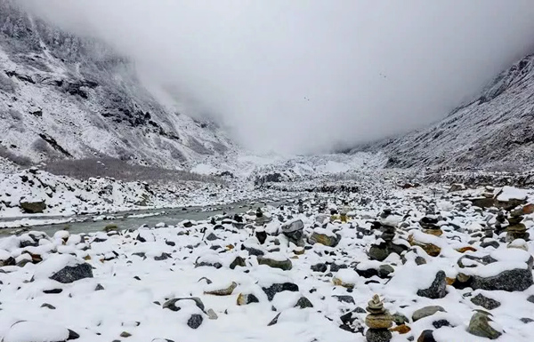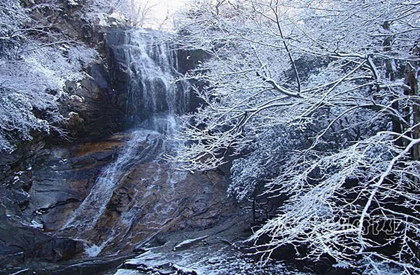 雪中的峽谷景色壯麗無比,天地之間渾然一色,溪流瀑布撒落在一片銀色之中,千姿百態(tài),令人撲朔迷離,恍惚置身于童話世界中。