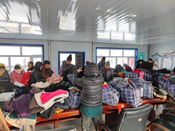 “我們把整理出來的衣服能洗的全都洗了一遍,還用了柔順劑。讓衣服香香的、干干凈凈的,村民穿得才安心?!痹撔泄撠?zé)人李穎杰、朱巍巍在組織員工整理衣物的過程中還不忘分享勞動心得。