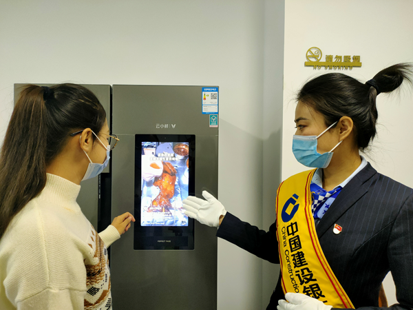 建設銀行大慶分行工作人員向首批體驗者演示智能家電功能