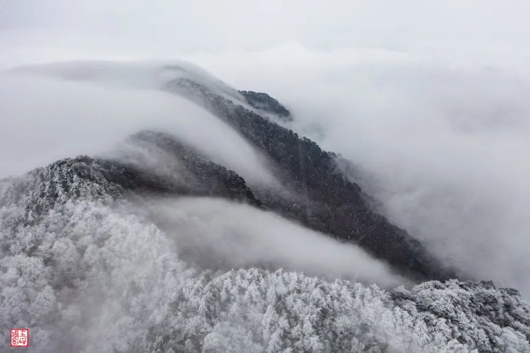 冬天,朵朵雪花落滿了大別山川,蜿蜒在漫山雪葉中的華東最美自駕線路——金寨中國紅嶺公路,似鑲嵌在群山里的九曲黃河。黃河的那頭,曾有紅軍戰(zhàn)士的吶喊聲、沖鋒聲,鮮血淋漓的汩汩之聲,開山辟路的振聾發(fā)聵,在山谷間回腸蕩氣。拂曉時分,皚皚白雪皴染馬鬃嶺,云霧在大別山肩翻騰,讓游人平淡不羈的臉龐拓印出冰清玉粹的神思。雪葉,一針一線錦繡在上。