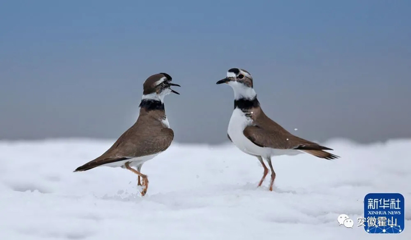 《雪地上一對(duì)長(zhǎng)嘴劍鸻》