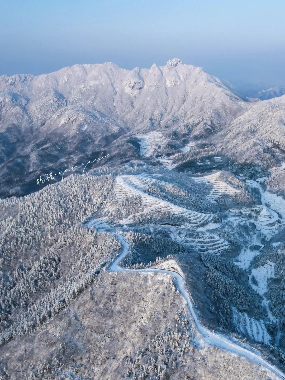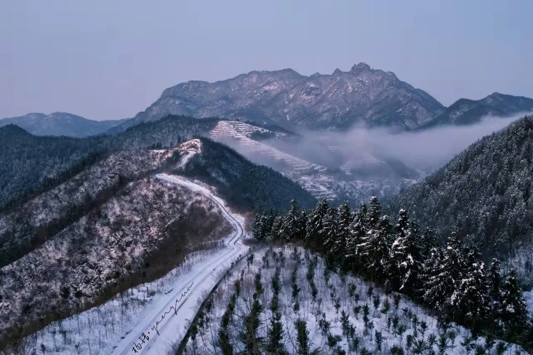 天橋山最美的季節(jié)是冬季,尤其是雪后。因?yàn)槎境霈F(xiàn)云海的機(jī)率更大些,再加上山下就是梅山水庫(kù),溫差稍大就會(huì)形成云海奇觀。天橋山相比較周邊的山,地勢(shì)較高,可停車觀景的地方非常多,站在上面極目遠(yuǎn)眺,真的是會(huì)當(dāng)凌絕頂,一覽眾山小。雪后的天橋山正如詩(shī)里描繪的那樣,有如山舞銀蛇,原馳蠟象的壯麗景色。